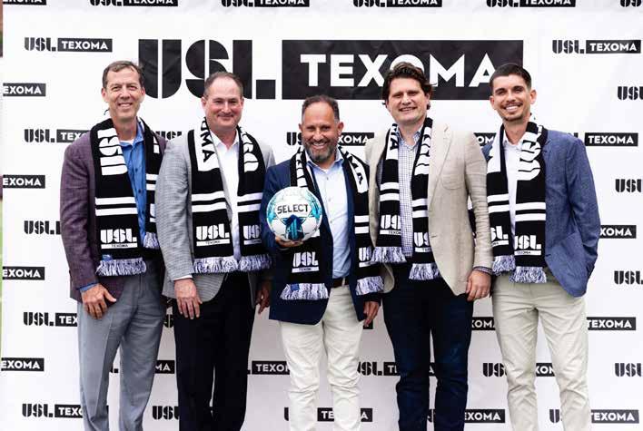 of the region via soccer,” Simon states. He continues, “We want to turn the Red River from divided to unified. We are both Texas and Oklahoma.” The group has spent the last year meeting with community leaders, school districts, and local businesses to invest in the area. For example, they introduced the Texoma Coffee Trail promoting local businesses and coffee shops.