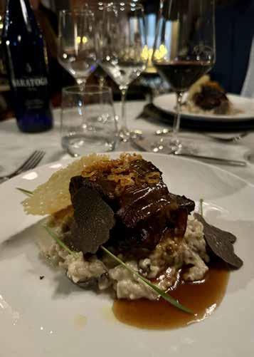 The February menu was Italian-inspired genius, starting with a sublime elk bruschetta and a silky lobster bisque topped with a generous serving of lobster. Following was a course of salmon croquette so good that it defied description. A melt in your mouth short rib atop a luxurious risotto was next, ending in the dessert of a poached pear with local honeycomb.