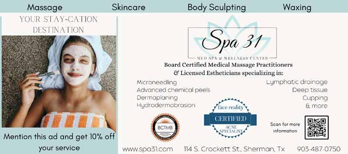 Sherman Community Players is celebrating 75 years of local theater! Enjoy dinner and a show while supporting the arts. Showing at this summer's benefit is Ken Ludwig's "A Comedy of Tenors" and included in your ticket is a threecourse dinner. Call to reserve your seat today; we guarantee smiles all around! (903) 892-8818, SCPTheater.com