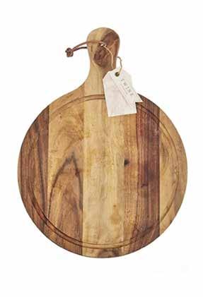 7. 16" Acacia Cheese Board Paddle with Strap ($48.99) | An elegant, host-friendly board with rustic texture and modern style. | Giftbar | shopgiftbar.com