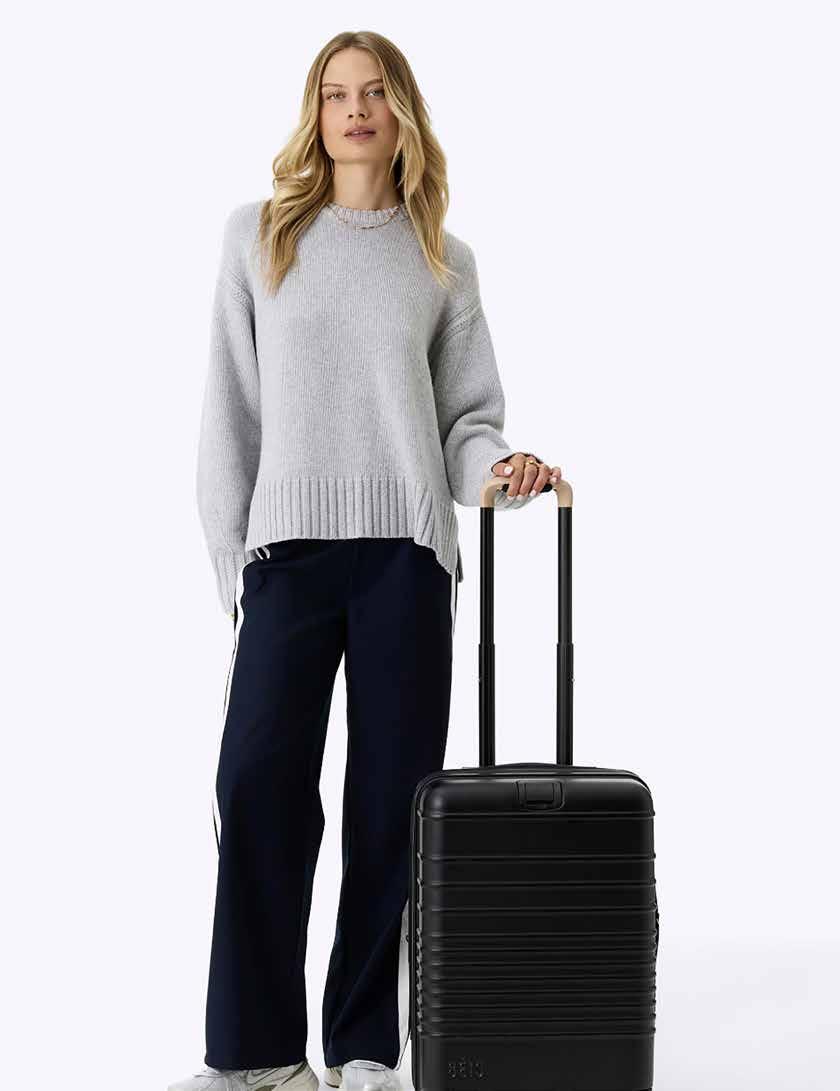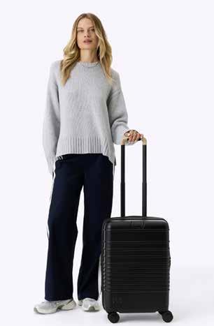 Comfort matters on long flights, but style doesn’t have to take a back seat. This chic athleisure set from ALO Yoga strikes the balance. Crafted from cozy knitted cotton yarn, the Scholar set offers warmth without overheating. Thoughtful details—including a kangaroo pocket, drawcord waist and zippered side pockets—add functionality. Priced at $386 for the set, it’s a polished addition to any travel wardrobe.