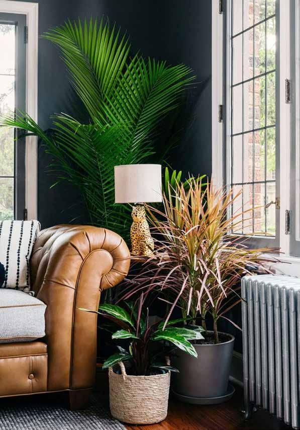 Another significant shift is the move away from neutral, monochromatic interiors toward botanical influences and nature-inspired color palettes. Green has emerged as a versatile neutral, offering a sense of renewal and balance. Indoor plants and thoughtfully arranged greenery not only enhance visual appeal but also contribute to improved indoor air quality. Lowmaintenance options such as pothos, spider plants and monsteras can help reduce common indoor irritants like dust and mold spores, an important consideration during colder months when homes are sealed more tightly. Groupings of succulents, ivy and moss provide a modern alternative while delivering similar benefits.