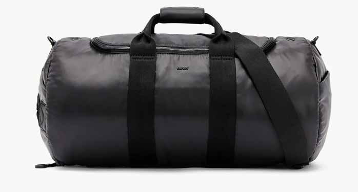 For travelers who prefer flexibility, the Remus Duffel from Caraa is a standout. Made from recycled, water-repellent nylon with an antimicrobial lining and Italian leather accents, it transitions seamlessly from carry-on to gym bag. A built-in luggage sleeve makes airport navigation effortless. Available in gold or black, the duffel retails for $410.