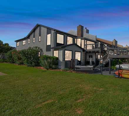 “The two-story deck is definitely a draw,” says Jerrica. “It provides both privacy and scenery on Lake Conroe.” Extending from the upstairs, over the patio, across the bulkhead and boat dock, and into the lake, it boasts a million-dollar view as well as ample outdoor living space. Couples and families gather, barbecue, dine, sunbathe, swim, fish, kayak, and paddle board in a layout that’s highly functional. Equipment is stowed as a type of usable backyard art, with relaxing sunsets and a hot tub. Everything else evokes a sense of lake living and adventure.