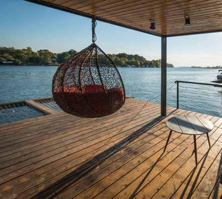 Decks built around homes, especially at lake houses and vacation properties, bring the indoors outside and can provide practical storage ideas that make kayaks, paddle boards, oars, and other equipment a part of the décor. It’s a form of efficient hardscaping that goes handin-hand with landscaping and turns a house into a showpiece.