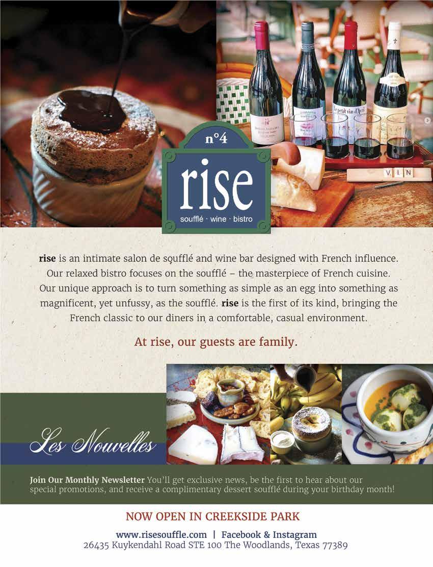 enthusiasts and connoisseurs. Wine tastings, seminars and educational sessions have deepened attendees’ understanding of winemaking techniques, grape varieties and nuanced artistry behind each bottle. The event kicked off with the brand new Harrison’s Restaurant of The Woodlands Waterway Resort and moved through The Woodlands. Events took place at Sorriso Modern Italian Restaurant, The Peach Orchard Venue, The Marriott, Carlton Woods Country Club and many other beautiful venues.