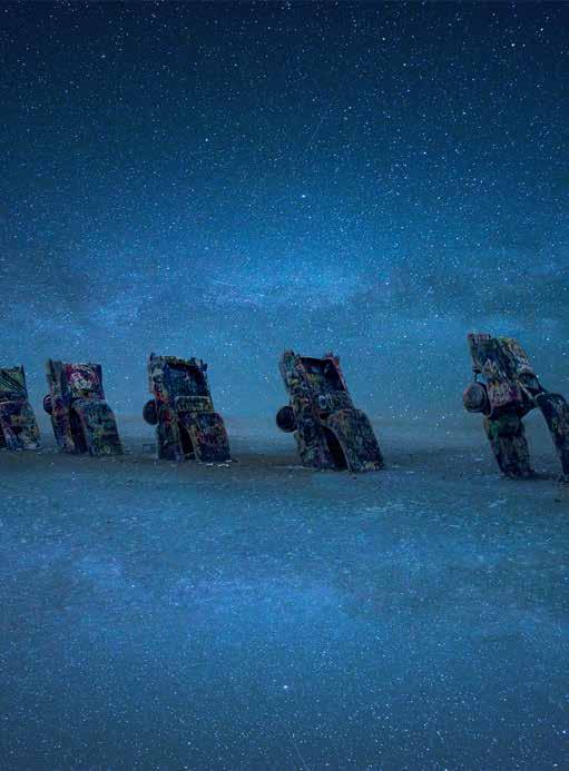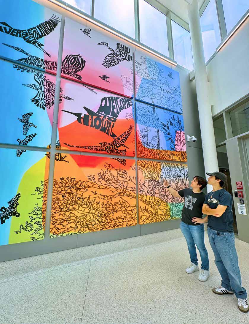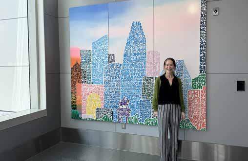 Bottom: Marlo Saucedo stands beside “Welcome to Houston” at IAH Houston George Bush Intercontinental Airport Gate D-5, a work by Saucedo and Leslie Gaworecki. Read Saucedo’s story on the next page.