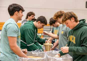 Students fill bags with rice as part of the Mission of Hope food packing.