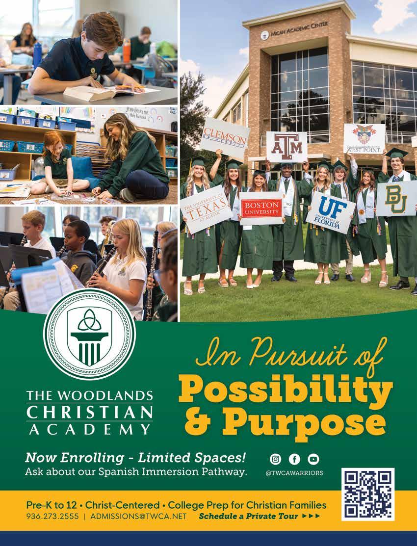 With that mind, we are delighted to share this February edition with you. Inside, you’ll find a spotlight on how The Woodlands Christian Academy's LOVE Week encourages students to live out God’s love, a profile on a local custom boot shop—Valentine’s gift anyone?—and a spa round-up, ideal for a couple’s day date. This issue also features three thoughtful Q&A’s with familiar faces in our community, including The Woodlands Area Chamber of Commerce’s Aaron Cox, Beth and Bob Ferester, and Nicole and Doug Freer.