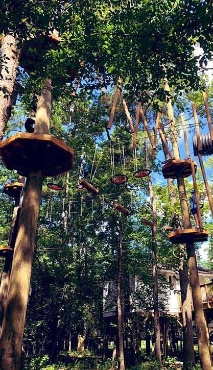 age require an adult monitor on the course. For children ages nine to 12, one adult per two children is required. To traverse the treetops independently, individuals must reach 70" in height and weigh between 44 and 275 pounds for equipment safety specifications.