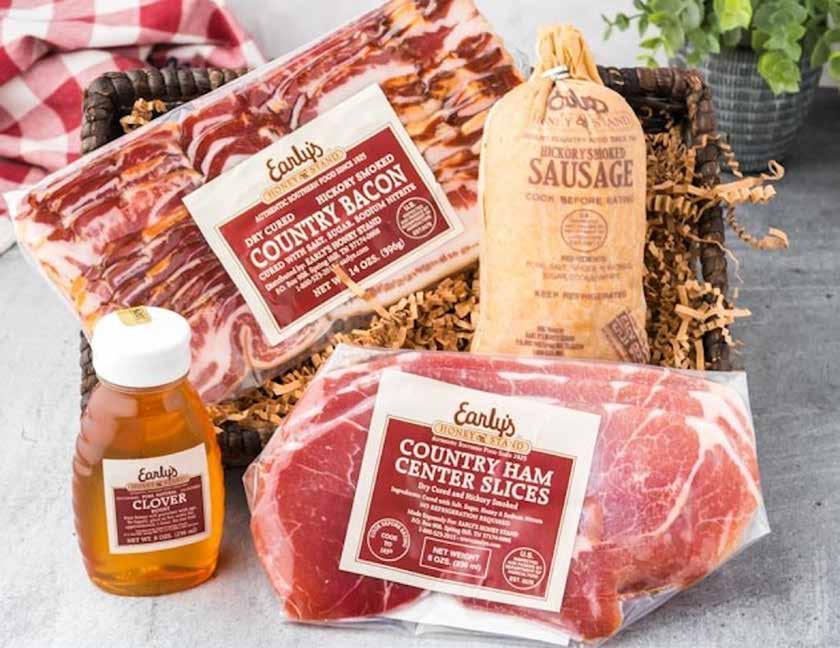 Some of the items they pour their heart and soul into at Early’s are their smoked meats. Early’s spends nine months salt-curing and aging their country hams to perfection before placing them in the smokehouse to give them the same hickory smoked flavor they’ve been serving up since 1925. Early’s sausage is ground, seasoned and allowed to sit for 24-48 hours before being bagged and placed in the smokehouse for several days. This detailed process is what sets them apart from other sausages that simply don’t possess the same quality and flavor. As for their bacon, it has been called some of the best bacon sold in America. Early’s sells prime, lean-cut bacon, rubbed in their special seasonings and spices and smoked over hickory wood, that’s sure to get your feet on the floor in the morning at the smell of it.
