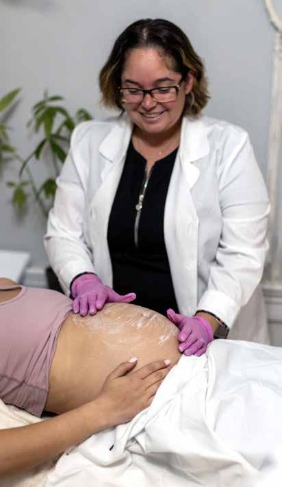 As a mother of children ages eight, four, three, and one, she wanted to help expectant mothers feel their best during their pregnancy. During her third pregnancy, even as a skincare professional, she was having problems finding products until she came across IMAGE Skincare. “They have tailored about 80, maybe almost 90 percent of their products to be everybody safe - pregnancy safe, kids, elderly, cancer patients,” says Guay. “They’re regulated by the EU, which is a much stronger regulation than anything in the United States. Once I did their training on what I could use for these beauty services, I started creating one that’s just for your belly.”