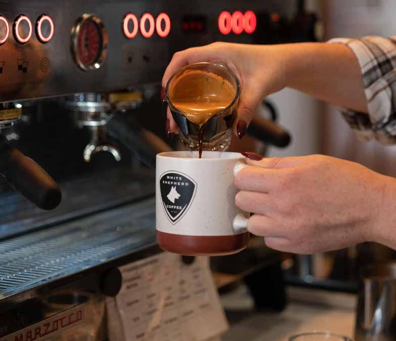 In addition to their locations, White Shepherd Coffee is proud to bring bold, exceptional coffee directly to your private parties, community events, and employee or customer appreciation gatherings, ensuring a memorable experience with every sip. With two fully equipped, stateof-the-art mobile units, the team is ready to serve your guests wherever you choose to celebrate, delivering an unforgettable coffee experience that fuels genuine connection and lively celebration.
