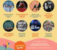 Throughout July, August and September the WCPAC will host its Summer Tribute Series featuring new and returning musical groups who pay tribute to a variety of genres and artists. The series includes Homeward Bound: The Music of Simon & Garfunkel on July 13, World Turning: A Tribute to Fleetwood Mac on July 27, Motor City Magic: Motown Tribute on August 17, Chi-Town Transit Authority: Chicago Tribute on August 24, and Forever Abbey Road: Beatles Tribute on September 7. WCPACTN.com/tickets_and_events/ summer_tribute_series.php