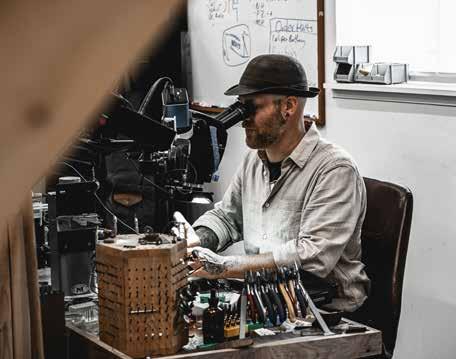 With Mark’s global connections, Buffalo Craft can source the finest rare gems, making them a premier provider of colored fine gemstones in the Nashville area. In their Spring Hill studio, Mark and his team of specialized artisans, including a CAD expert, were busy crafting various rings and intricately transforming a brooch into a cuff bracelet. One project involved making four exact replicas of a grandmother’s 1930s cluster ring. Mark explains, “We had to source old-world cut diamonds that are all period accurate.”