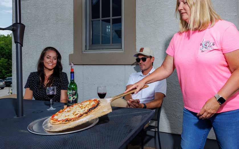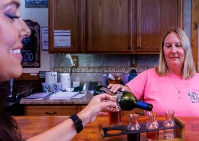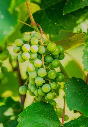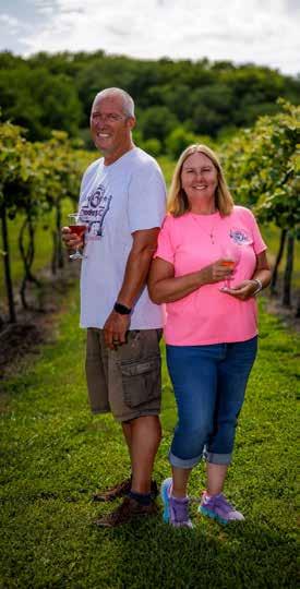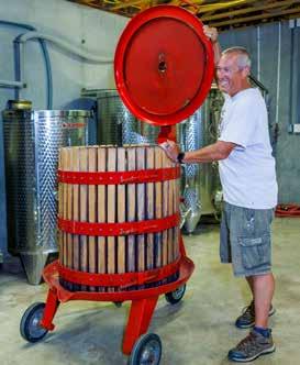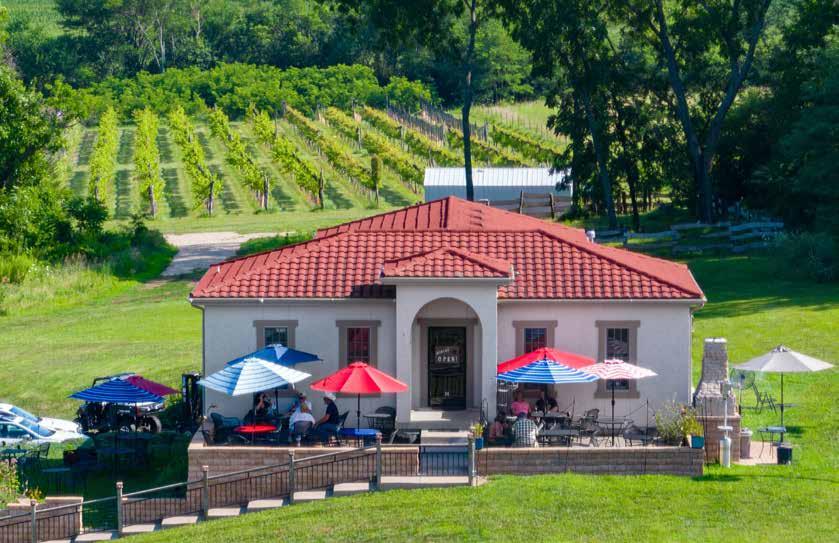 They thought right. “We have two-and-a-half acres of grapes,” says Vance. “We grow Concord, Edelweiss, St. Vincent, Framinette, Vignoles, and Corot Noir.” With the exception of Concord, a domestic grape, all of the grapes are FrenchAmerican hybrids that are able to flourish in the Kansas climate.