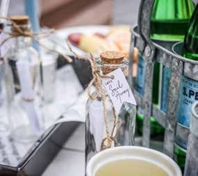 • Glass bottles labeled “Let’s Sail Away”. Inside, roll up a handwritten note, joke or riddle for guests to enjoy a chuckle or conversation starter.