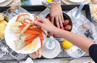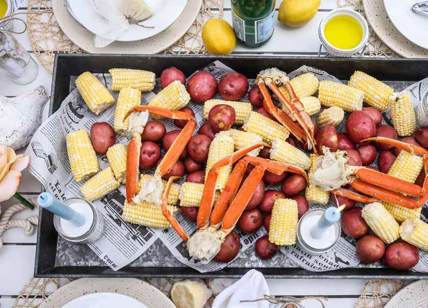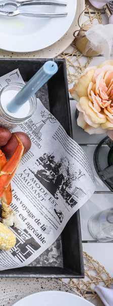• Large, galvanized tray overlaid with parchment paper to hold the crab boil feast.