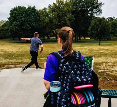 Although disc golf has officially been around since the 70s, it’s become much more popular in the last few years due to the pandemic. “Kansas was one of the early adopters of the game,” says Terica Gatewood, who, along with her husband Sean, owns Play It Again Sports in Topeka. “The Ice Bowl [a disc golf tournament] was actually played here in Kansas for many years.”
