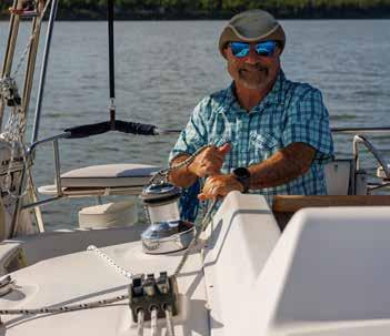 “Everyone can sail,” Barnett shared. “All you need is a good attitude and a willingness to learn.” He says only a little physical capability is required as the equipment, like mechanical winches, does the heavy lifting. “My oldest student was 84 years old. He had sailed earlier in his life and I guess the water just called him back,” Barnett said. “He remembered a lot, and what he lacked in mobility he made up for in intellect and problem-solving. So it’s never too late to set sail.”