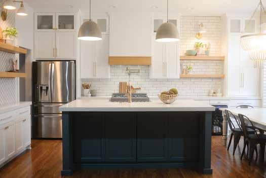 From painted and stained islands to dark lower cabinetry with bright white uppers and mixed lighting fixtures, contrast is the name of the game this year. You’ll see this juxtaposition between clean white and darker colors or even this year’s favorite - greens and blues - all over newly designed kitchens. You’re not breaking any rules by coordinating sculptural pendants over the kitchen island with more vintage-inspired gooseneck sconces over the standalone bar or a chandelier over the eat-in kitchen.