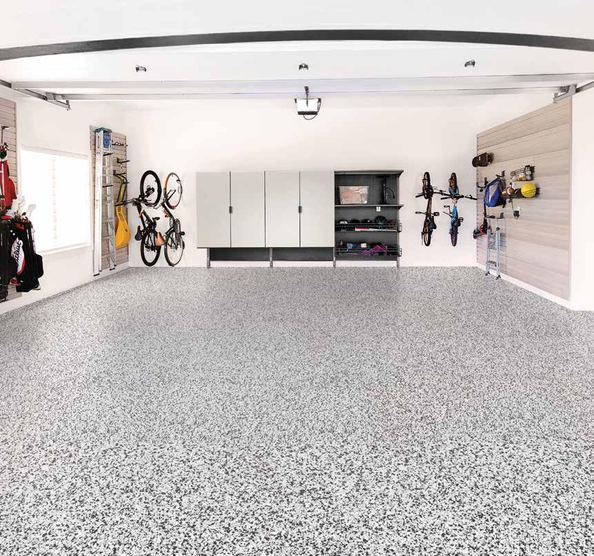 Applying 100% polyaspartic for both the base and top coat provides better adhesion and long-term flexibility. This allows the coating to expand and contract as floors warm and cool. That makes it ideal for garages, basements, porches, patios, walkways and commercial spaces.