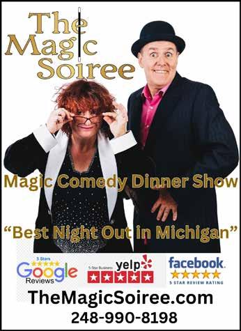 Comedy plus magic? Imagine that. Your hosts are award-winning British comedy magicians Lady Sarah and Keith Fields (as seen on Fox TV and WXYZ). The evening starts with magicians who bring the magic right to your table and ends with a hilarious stage show, plus a delicious buffet dinner. Cash bar available. Tickets go fast; visit TheMagicSoiree.com.