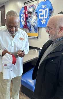 1: John Arndt from Troy City WFC thanks his sponsor, Fresh & Pressed Juice in Troy. 2: Billy Sims greets Jonathan Szczepaniak (C&G Newspapers) and his father Brian while visiting his Troy BBQ. 3: Billy Sims signs a cap for local pastor Hardy Smith of New Covenant Church. 4: Magician Fred Lenter amazes and entertains guests at The Magic Soiree at Camp Ticonderoga. 5: Billy Sims strikes the Heisman pose while holding our February issue that features him. 6: StretchLab celebrates the opening of its Troy location at the corner of Maple and Coolidge. 7: Dr. Brittany VanBuskirk and her team visit Kindercare Daycare Center to teach good oral hygiene.