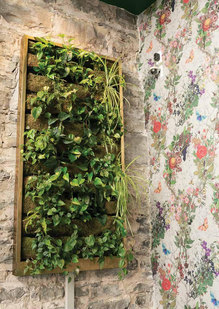The most obvious benefit of a vertical garden is the visual beauty it brings to the room. Its unexpected presence adds surprise and drama, while its living tenants, with their varied textures and individual personalities, add energy and a bit of charm as well.