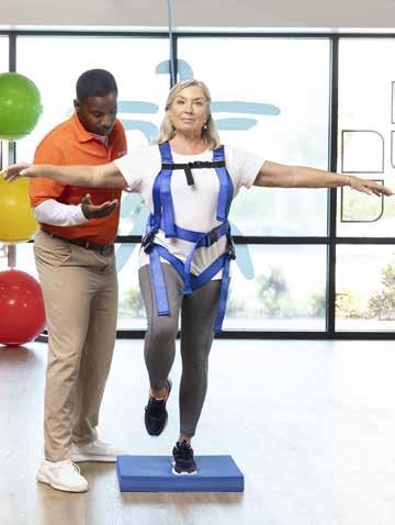 “Obstacles courses, machines that light up different colors, ‘find the blue one and step on it’—our program forces clients to not only walk, but also figure out where they need to go and go there. We have balance boards, we have goggles that monitor eye movements. It's a lot of functional training.”