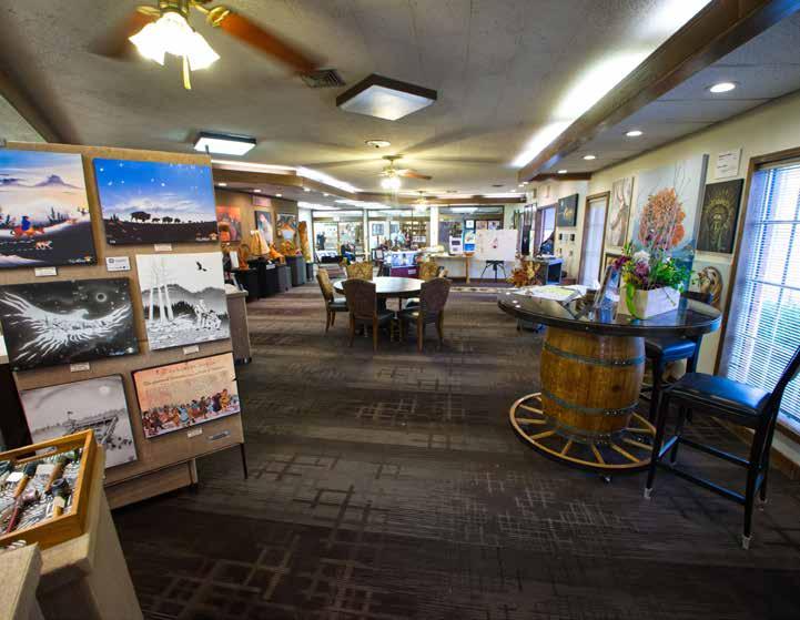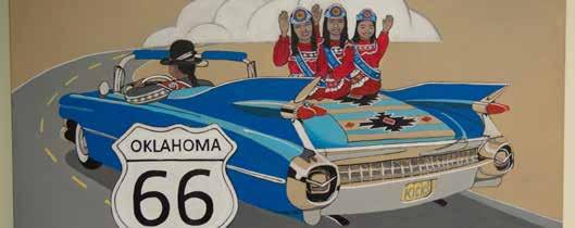 Though the Route 66 Native Arts Alliance’s Vault Gallery is housed in an unassuming former bank building on Oklahoma Highway 66, it is far from tame. On exhibit is a vibrant collection of paintings, sculptures, digital art, woodcarvings, furniture, leatherwork, and unique goods by both seasoned and burgeoning Native American artists from across the country. These artists act as cultural ambassadors of their tribes and serve to educate us on the unique histories and experiences of Native communities, explains founding member and President Betsy Swimmer.