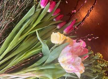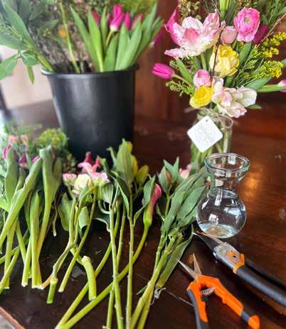 To create a more aesthetically pleasing arrangement, stick to odd numbers of 3 or 5 of each flower variety. Some fun additions to add texture, dimension, and aroma are cherry branches, flower buds, and herbs such as lemon thyme or cinnamon basil.