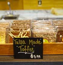 Tulsa’s own Goodytwos Toffee Company as well as nostalgic candies like candy sticks, divinity, and ribbon candy at Christmastime. The shining glory is a bar of edible cookie dough, a delectable goodie that can be kept in the fridge for up to 6 months.