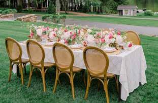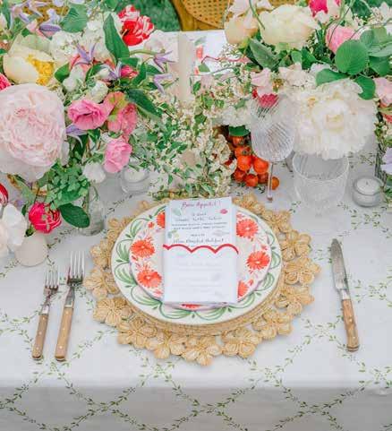 Yumiko Fletcher from Hana Floral Design selected a combination of bold and soft flowers that created movement and wove in texture. Her use of a variety of seasonal blooms including tulips, clematis, sweet pea, poppies and fresh on the vine tomatoes helped create a garden inspired, whimsical, al fresco table that set the tone for the day. CONTINUED >