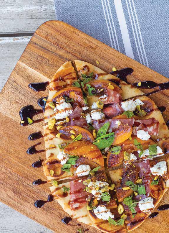 Grilled Peach Flatbread with House-Made Rosemary Paneer Cheese