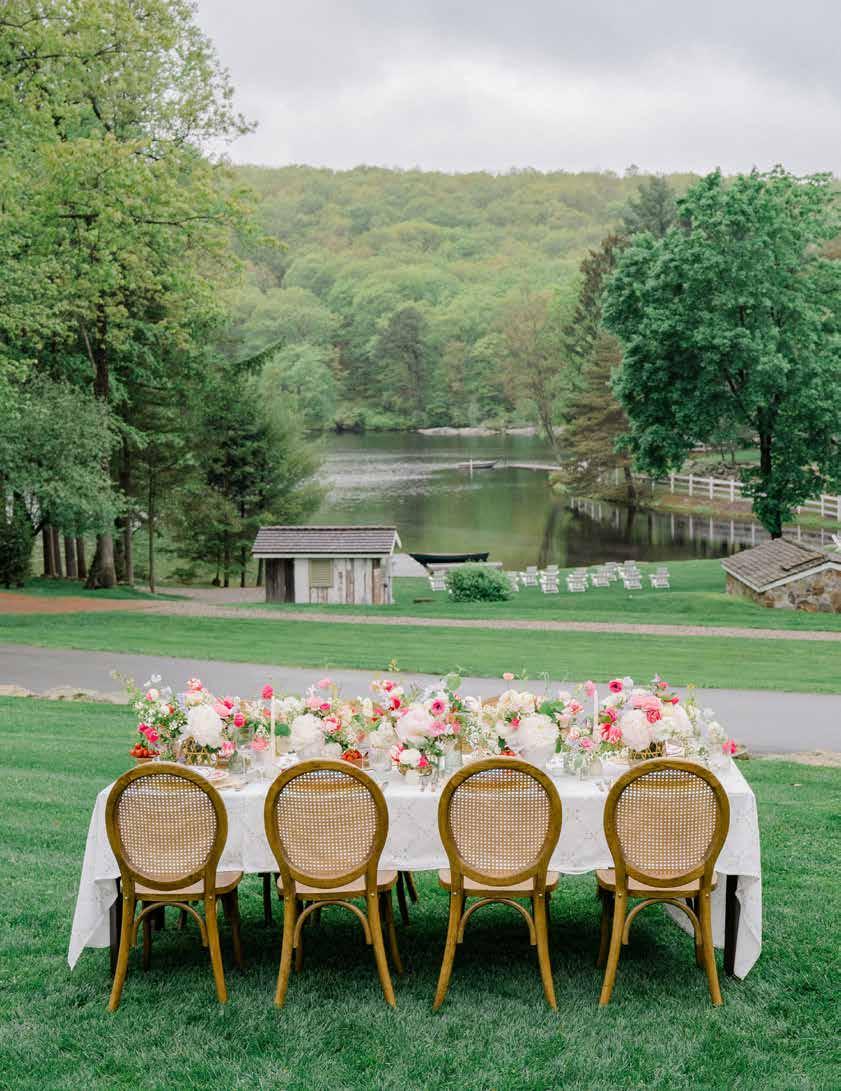 The elevated camp setting of Cedar Lakes Estate in New York proved to be the perfect setting for a summer styled shoot. In the heart of Hudson Valley, this estate is a dream location for a destination wedding. Guests can enjoy a weekend of yoga, canoeing, swimming in the lake, and so much more – it’s the perfect little escape outside of the city.
