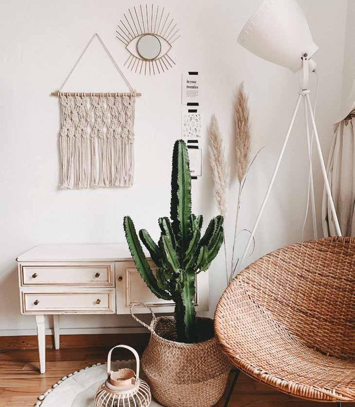 Decorate your space with handmade textures such as the modern, maker revival of 1970s macramé and year-round tropical feel of wicker. MACRAMÉ Made through knotting instead of weaving, macramé can add a unique touch in many various ways. Houzz contributor Laura Gaskill suggests incorporating it as nursery decor, plant hangers, wall hangings and modern fiber arts. WICKER According to Houzz contributor Yanic Simard, “the best way to really embrace the luxury-cottage appeal of wicker and rattan is to combine different forms of the two in one space... Look for other unexpected places to add a natural twist to your home with a new material woven into your palette.”