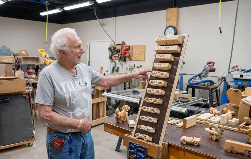 Previously, the Sutherlins operated their toy-making woodworking shop from their Nokomis home garage. However, about four years ago, they approached Doug Feller, the CEO of the extraordinary retirement community Village On The Isle (VOTI), with a compelling proposition: to donate their equipment and continue their toy ministry at VOTI.