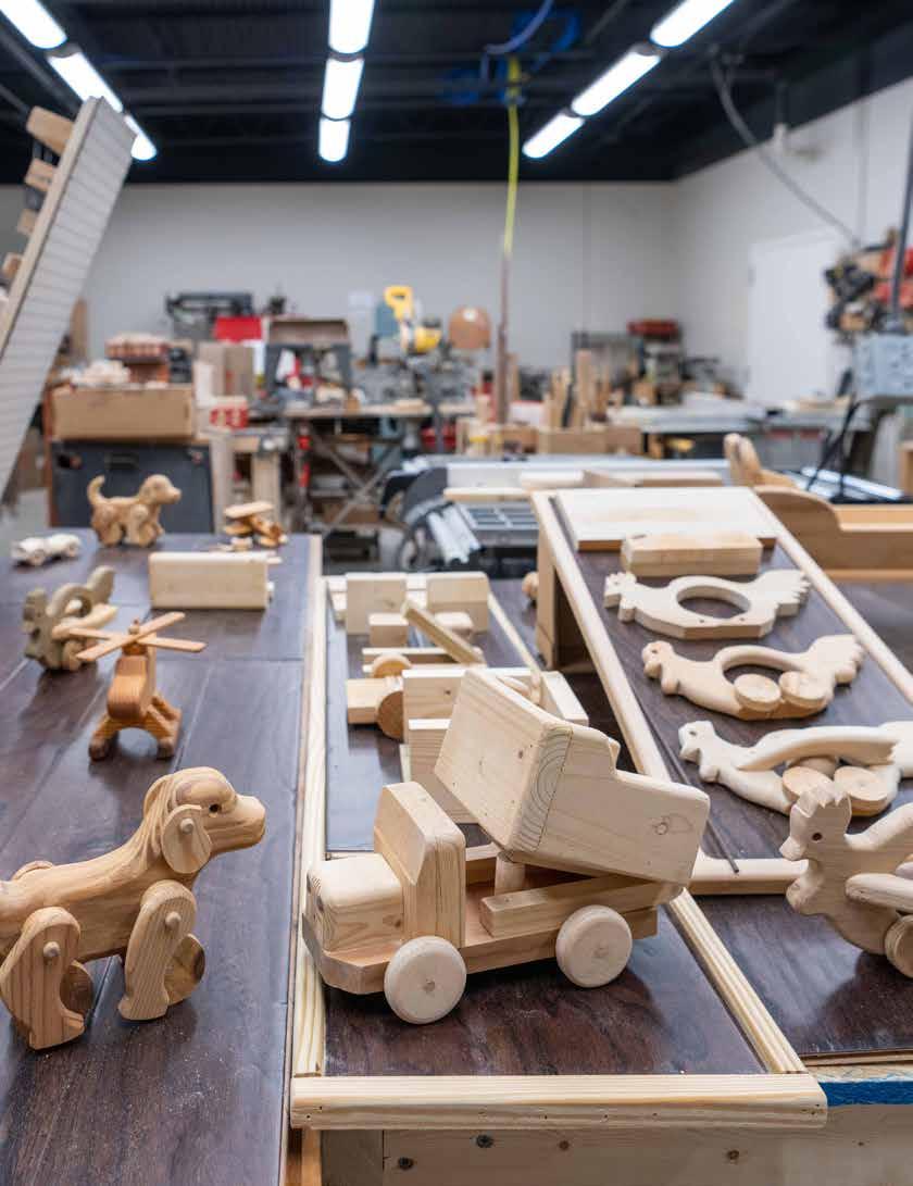 In 2020, after selecting a general contractor, VOTI began the buildout. Multiple spaces were combined to create a woodshop six times larger than the previous one. Within this expansion, five rooms were designated for specific functions related to toy production, such as the drying room and finishing room, as well as for the residents' woodworking needs.