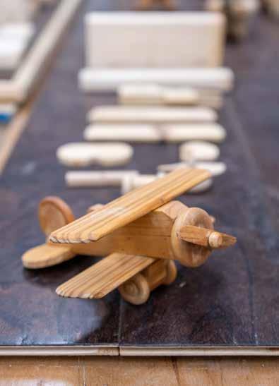 “The toy ministry aligns with VOTI’s purpose as a faith-based social ministry affiliated with the Evangelical Lutheran Church in America.”A wooden plane is one of the toys made for kids.