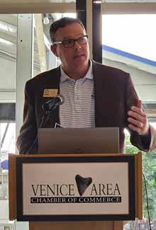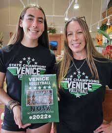 1: VHS junior Summer Kohler, 2022 Volleyball State Champion with mom Stacy, at Reflections in Gold garnering support for the 2023 Championship season. 2: FSU economist Dr. Jerry Parrish was keynote speaker at Venice Chamber’s 5th Annual Economic Outlook Breakfast held at Venice Yacht Club. 3: (L-R) Christa Sweeney, Bob Hite & Charmaine Tincher support ONCC Appreciation for Nonprofits, hosted by Paradise Grill & sponsored by START of SC. 4: (L-R) John Holic, Venice Yacht Club Commodore; Bob Mudge, Venice Gondolier; and Charmaine Tincher, VCL at the Venice Chamber’s 5th Annual Economic Outlook Breakfast. 5: Lori Bailey (L) & Wendy Rose enjoying the Watermelon Rosemary Crush recipe from VCL’s July Issue. 6: Venice Chamber Board Chair David Joyner, Joyner Family Insurance, at the Chamber’s Economic Outlook Breakfast held at the Venice Yacht Club. 7: Epiphany Cathedral student Madalynn is all smiles after winning first place at the National AAU Gymnastics Championship. Venice YMCA Coach Natalia Obraztsova was instrumental in Madalynn’s success.