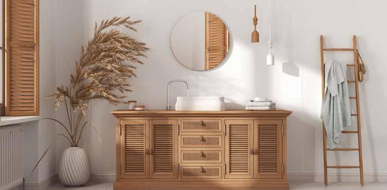 Light wood tones and textural doors for bathrooms are all the rage, says Morton.