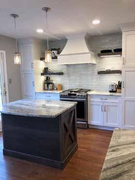 features like waterfall islands, sink apron fronts, ledges, and full-height backsplashes. Handcrafted textured tiles in a 4x4 size are gaining popularity, as well as wallpaper accent walls.