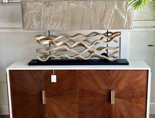 This fantastic driftwood lamp adorning this beautiful textured wood credenza exemplifies Coastal Style!
