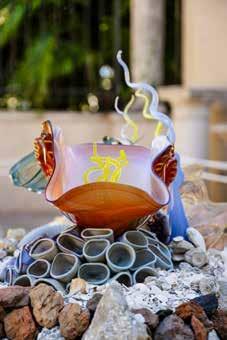 influenced by these two geniuses,” said Alan of Jacques Cousteau and Walt Disney. The combination of ocean life and fantasy would inspire many of his later creations, including From an Ancient Seabed . Alan’s lifetime pursuit of ceramics and glassblowing has allowed him to construct a scene that evokes in others the same sense of wonder he felt gazing into the depths of the sea and watching fantasies unfold in radiant color.