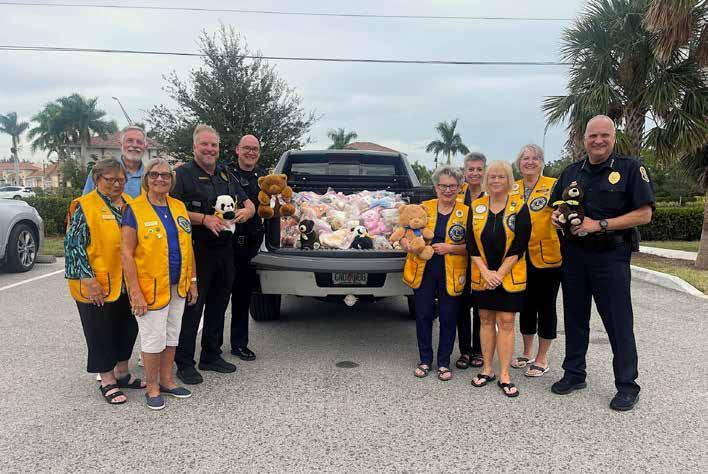 Sergeant Hammett with Venice Police officers receive 130 new teddy bears donated by the Venice Lions Club. Officers give them to children in scary situations.