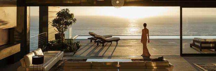 The residence’s 594 sq. ft. may sound small, but she assures it isn’t. “These apartments are surprisingly bigger than people think. I have more closet space here than in my villa.” Her home features a full-size kitchen with stainless steel appliances, quartz countertops, deep storage cabinets, a large full bathroom with a walk-in shower, and ample storage. The bright, open-concept