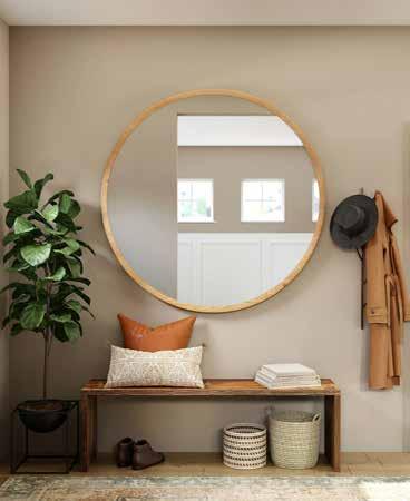 People are gravitating towards high-contrast elements and color-blocking that will stand out and grab your attention no matter the season. Black trim on the exterior around windows, dark-colored garage doors, a boldly painted front door, or textured backsplash in the kitchen. A striking contrast can often feel a bit loud, but start small. Add a large mirror in your foyer to create dimension or accent pillows that start a conversation. Even colorful or patterned dishes can help tell a story.