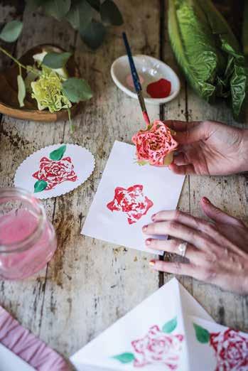 3. Stamp the lettuce “rose” onto blank stationery.