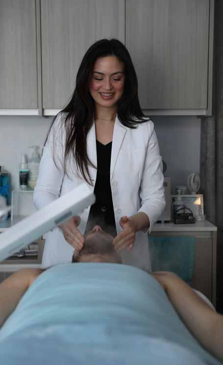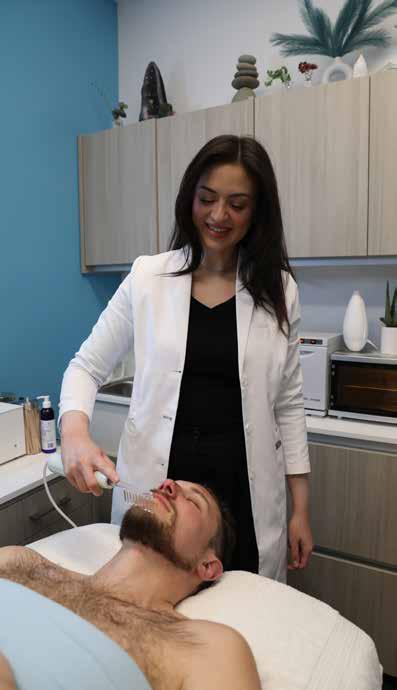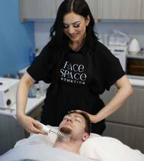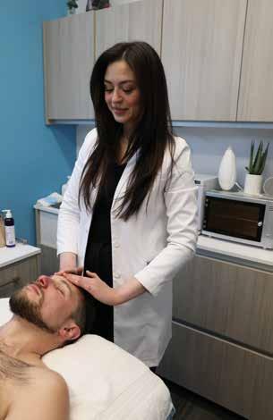 “We try to put men at ease when they come in, especially if it’s their first time,” she explains. “Because of things like facial hair, we use a lot of hot towels and steam, and electrical modality called High Frequency to kill bacteria and stimulate healthy hair growth. Add in the soothing face mask and upper body massage, they find the whole process very relaxing.”